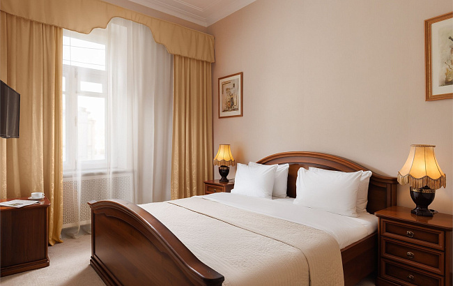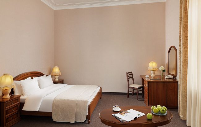 Отель располагает 116 номерами разного уровня комфортности от категории «Классический» до «Бизнес Люкса». В каждом номере установлена мебель в классическом стиле, мини-холодильник, кондиционер, телевизор, телефон, сейф, чайный набор, фен. Wi-Fi действует на всей территории отеля.